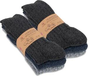 Herren Winter Wollsocken (6 Paar) Norweger Socken mit Frottee Plüschsohle - Schwarz Mix 39-42