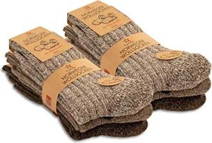 Herren Winter Wollsocken (6 Paar) Norweger Socken mit Frottee Plüschsohle - Braun 35-38