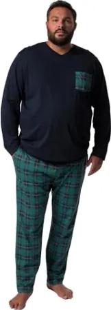 Herren große Größen Übergrößen Menswear L-8XL Schlafanzug Bauchfit, Zweiteiler, Langarm-Henley, Lange Hose Modern Fit Navy blau L 837715130-L