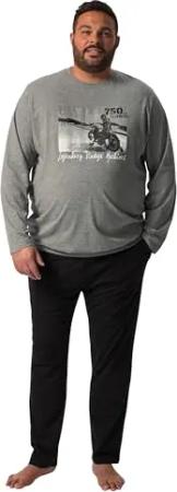 Herren große Größen Übergrößen Menswear L-8XL Schlafanzug, Zweiteiler, Bauchfit, Langarmshirt, Lange Hose anthrazit Melange XL 832144121-XL