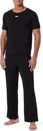 Herren Balance T-Shirt RN Pyjama-Shirt aus Baumwoll-Mix mit kontrastfarbenen Einsätzen Schwarz001 S