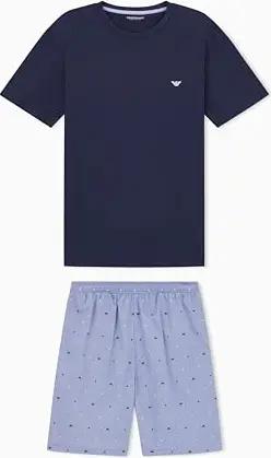 Herren Logo Pattern Woven Pajamas Pyjamaunterteil, blau, S