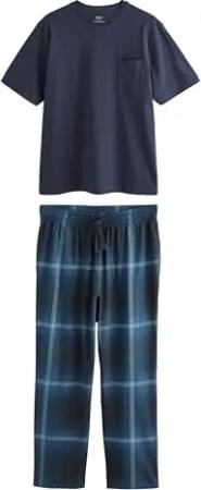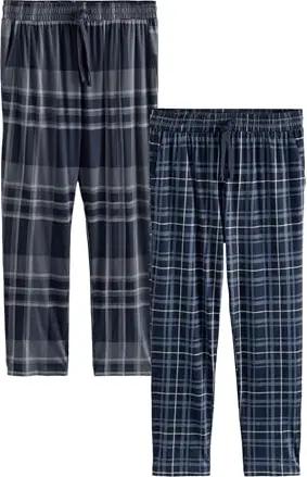 Herren Pyjamahose aus 100% Baumwolljersey, 2er-Pack Black/Navy Blue Check S