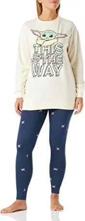Damen Pyjama Femme d'Hiver de Baby Yoda [ The Mandalorian ] 100% Coton Avec T-Shirt et Pantalon - Licence Officielle Star Wars Pyjamaset, Blanc, S