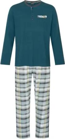 Herren Pyjama Schlafanzug Langarm mit Bündchen in eleganter Karo Optik - 212 101 90 409, Farbe:grau-Melange, Größe:52