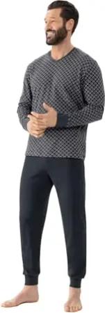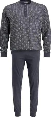 Herren Pyjama Langarm mit Bündchen in eleganten Minimalprint - auch in Übergrössen, Farbe:dunkelgrau, Größe:58