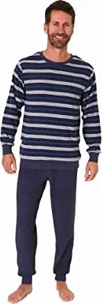 Herren Schlafanzug lang Pyjama mit Bündchen aus Baumwolle - auch in Übergröße, Farbe:Marine, Größe:56