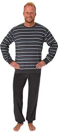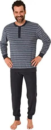 Herren Frottee Pyjama Langarm Schlafanzug mit Bündchen in Streifenoptik - 281 101 13 648, Größe2:50, Farbe:dunkelgrau