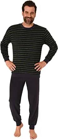 Herren Frottee Pyjama mit Bündchen in Streifen Look - auch in Übergröße, Farbe:schwarz, Größe:54