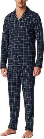 Schlafanzug lang Bündchen Karos nachtblau - Comfort Essentials 64