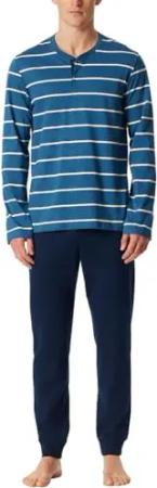 Herren Schlafanzug Lang - Casual Nightwear Pyjamaset 181926,Jeansblau_181926,54