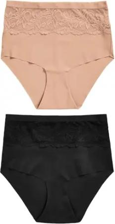 Damen Standard Bauchkaschierende Slips mit Spitze und hohem Bund Schwarz/Nackt 48