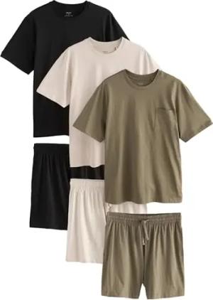 Herren 3er-Pack Schlafanzüge Black/Khaki Green/Ecru L