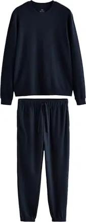 Herren Standard Langarm-Schlafanzug mit weicher Waffelstruktur Marineblau M