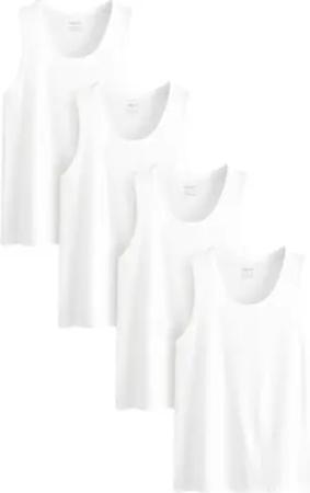 Herren Unterhemden, 4er-Pack Weiß S