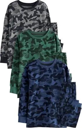 Jungen 3er-Pack Schlafanzüge mit Langen Ärmeln Grey/Blue/Green Camouflage 104