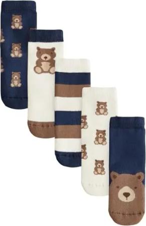 Jungen Gemütliche Socken mit Baumwolle, 5er-Pack Navy/Ecru Bear 19-22