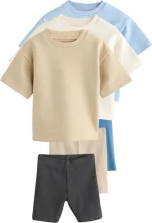 Jungen Langärmelige, strukturierte T-Shirts und Radlershorts, 3er-Pack Multi Neutral 62-68