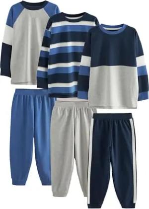Jungen Schlafanzüge mit langem Bein, 3er-Pack Blue/Navy/Grey 116