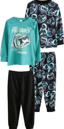 Jungen Schlafanzüge mit Langen Ärmeln, 2er-Pack Green/Black Pro Gamer 116