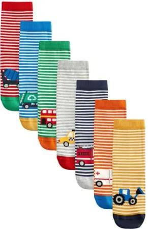Jungen Socken mit hohem Baumwollanteil, 7er-Pack Vehicle Stripe 19-22