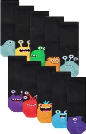 Jungen Standard 10 x Socken mit hohem Baumwollanteil Black/Bright Monsters 31-36