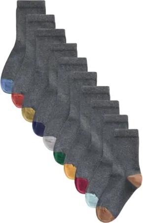 Jungen Standard 10 x Socken mit hohem Baumwollanteil Grey with Contrast Heel and Toe 31-36