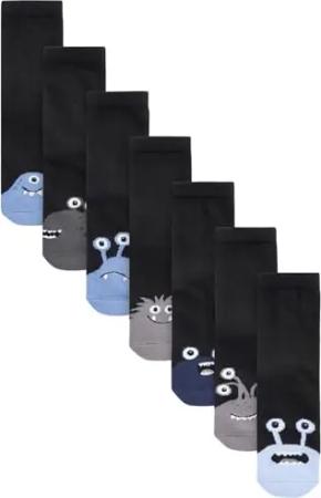 Jungen Standard 7er-Set Gepolsterte Socken mit Baumwolle Black/Blues Monsters 31-36