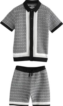 Jungen Standard Gestricktes Poloshirt und Shorts im Set Monochrom 104