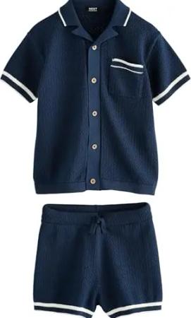 Jungen Standard Strick-Poloshirt und Shorts 100% Baumwolle im Set Marineblau 98