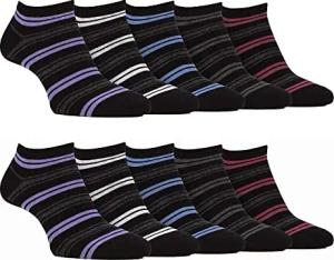10er Pack Herren Sneaker Socken Qualität Kurz Bambussocken (39-45, Schwarz Streifen)