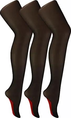 3er Pack Damen Sexy Nylon Nahtstrümpfe Schwarz Vintage Stil Kniehohe Atmungsaktiv Strumpfhose Durchsichtig (36-42, Schwarz/Rot)