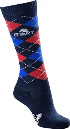 START Reitsocken Check für Damen Mädchen Kinder Reitstrümpfe Unisex Reit-Kniestrümpfe - Sox, Kniestrümpfe (Marineblau/Rot/Blau, XL)