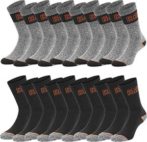 Crew Work Socks Unisex Herren Damen Arbeitssocken Regular Socken 10er Pack 39-42 43-46 47-49 50-52 Baumwolle Schwarz Grau Wadenlang, Größe:39-42, Farbe:Farbmix 6