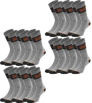 Unisex Herren Damen Arbeitssocken Essential Work Crew Socken 12er Pack Schwarz Grau Melange Baumwolle, Größe:47-49, Farbe:12 Paar Grey