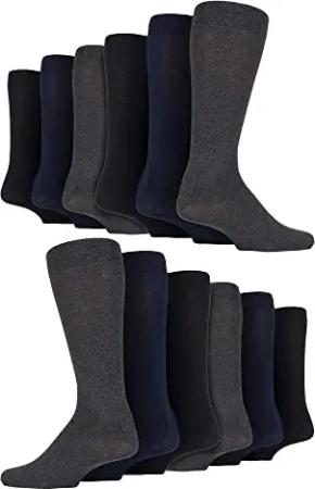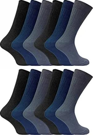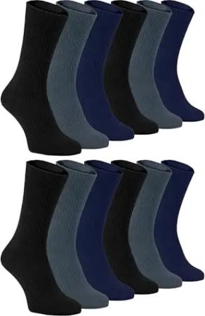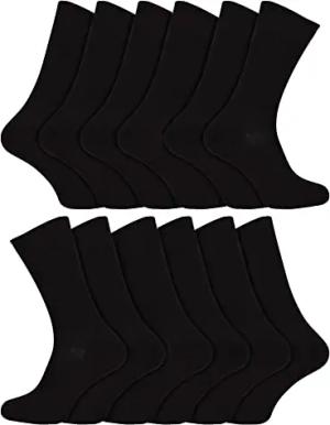 12er Pack Herren 100% Baumwolle Socken | Sock Snob | Atmungsaktive und Weiche Gerippte Schwarz Socken (39-45, Bng)