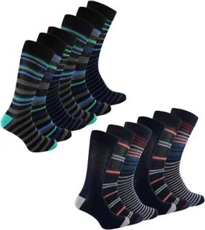 12er Pack Herren Socken Striefen Bunt Gestreifte Gemusterte Baumwolle Business Socken (39-45, Bng)