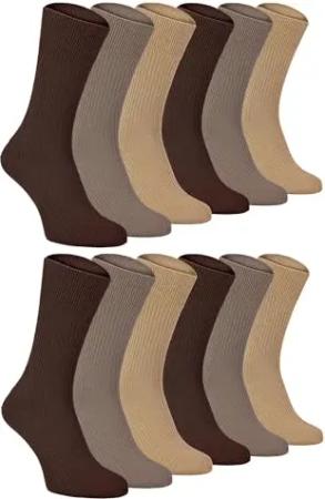 12er Pack Herren 100% Baumwolle Socken | Sock Snob | Atmungsaktive und Weiche Gerippte Schwarz Socken (46-50, Braun)