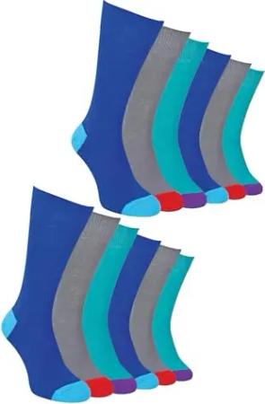 12er Pack Herren Socken Baumwolle Atmungsaktiv Crew Socken (39-45, Blaugrün)
