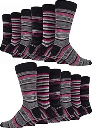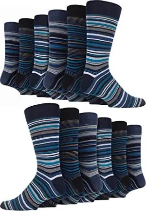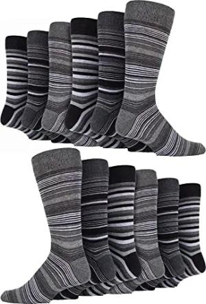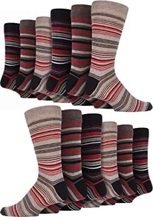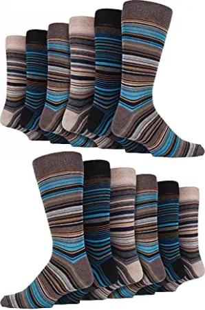 12er Pack Herren Socken Striefen Bunt Gestreifte Gemusterte Baumwolle Business Socken (39-45, Leicester)