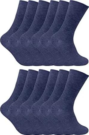 12er Pack Herren Socken Baumwolle Atmungsaktiv Crew Socken (39-45, Blau)