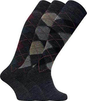 3 Paar Herren Extra lange Knie High Argyle Lämmer Wollkleid Socken in Braun oder Grau (39-45, Grau)
