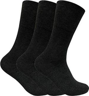 3er Pack Herren Dünn Extra Weit Diabetikersocken Ohne Gummi Thermosocken Für Diabetiker (39-45, Schwarz)