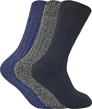 3er Pack Herren Gestrickt Winter Warm Outdoor Wollsocken mit Frotteesohle in 4 Farben (39-45, WB Blau)