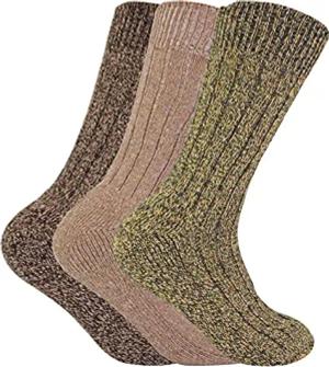 3er Pack Herren Gestrickt Winter Warm Outdoor Wollsocken mit Frotteesohle in 4 Farben (39-45, WB Braun)