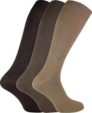 3er Pack Herren Lang Knielang Kniehohe Gerippt 100% Baumwolle Socken (39-45 EU, XLCS Braun)