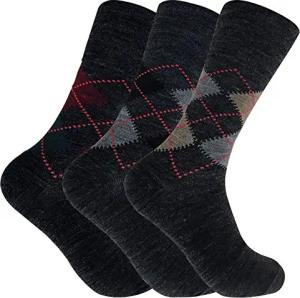 3er pack herren warm argyle socken wollsocken ohne gummibund mit weitem bund (39-45, SE049 Grau)