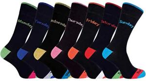 7er Pack Herren Tage Wochentag Schwarz Baumwolle Muster Komfortbund Socken (39-45, Tage der Woche)