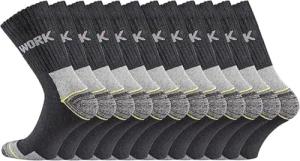 12 Paar robuste, atmungsaktive und haltbare Crew Arbeits-Socken mit 7 Monaten Anti-Loch-Garantie (DE/NL/SE/PL, Numerisch, 43, 46, Regular, Regular, Normal 12 Paar)