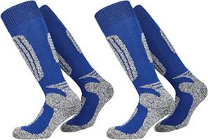2 Paar warme Pistensauser Skisocken mit Schafwolle und einer Spezial-Polsterung (Blau, 35/38)